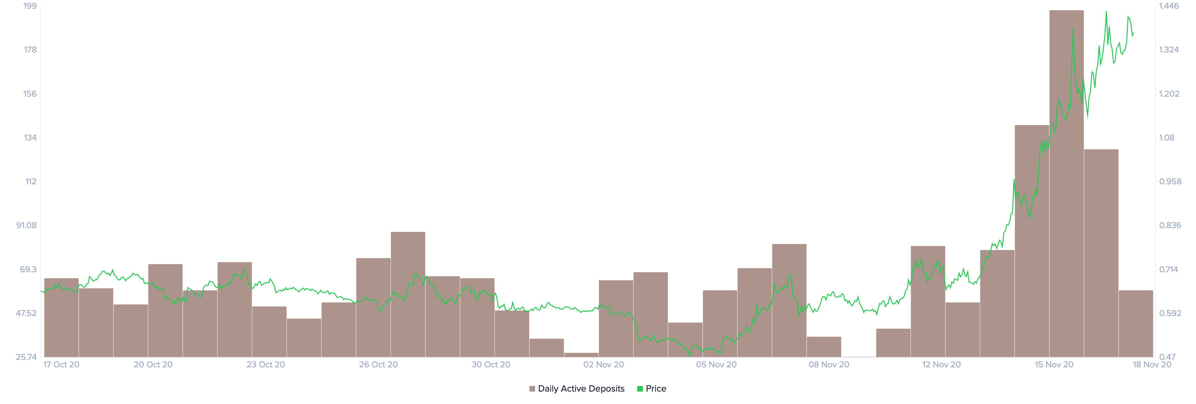 SUSHI has enjoyed substantial gains recently amid the massive recovery across the DeFi sector. The token's price gained 150% in less than two weeks, moving from $0.5 in November to $1.5 on November 16. At the time of writing, SUSHI is changing hands at $1.38.